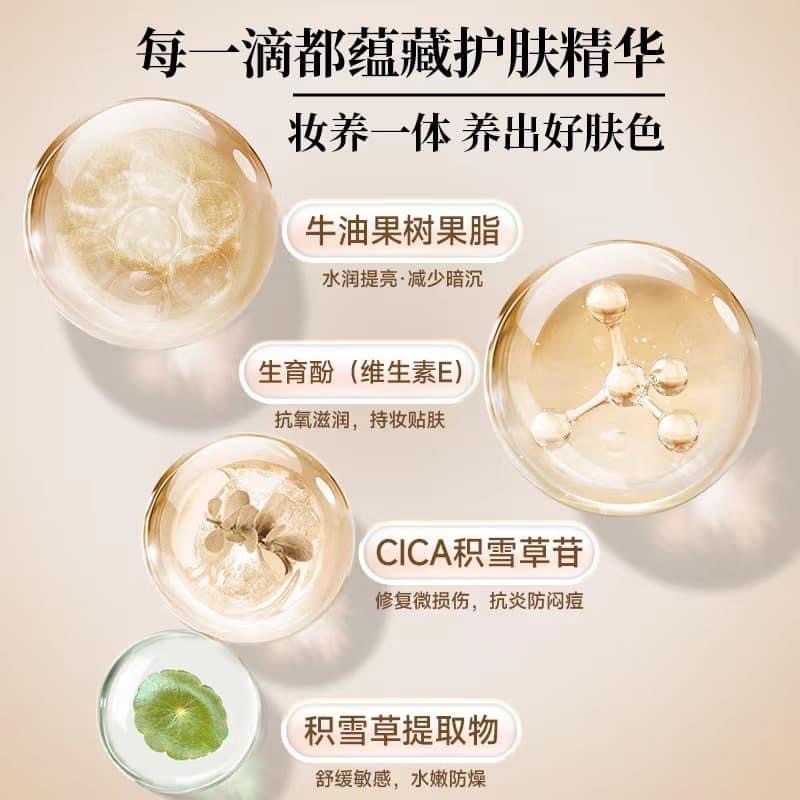 積雪草苷具有抗炎、促進受損皮膚快速愈合的作用,幫助底妝更好養護肌膚,防止底妝悶痘等問題