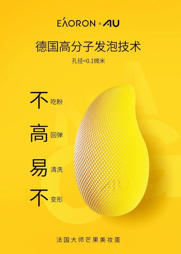 EAORON×AU澳洲芒果美妝蛋創新上市!不僅被稱為美妝工具屆的「愛馬仕」,更是巴黎時裝周的合作產品。整體以極具夏日感的亮黃色搭配獨具創意性的芒果形象誕生。手感Q彈柔軟,飽滿舒適,能快速打造清透自然底妝。尖端完美符合眼下及鼻翼的角度,輕鬆攻克煩人的上妝細節問