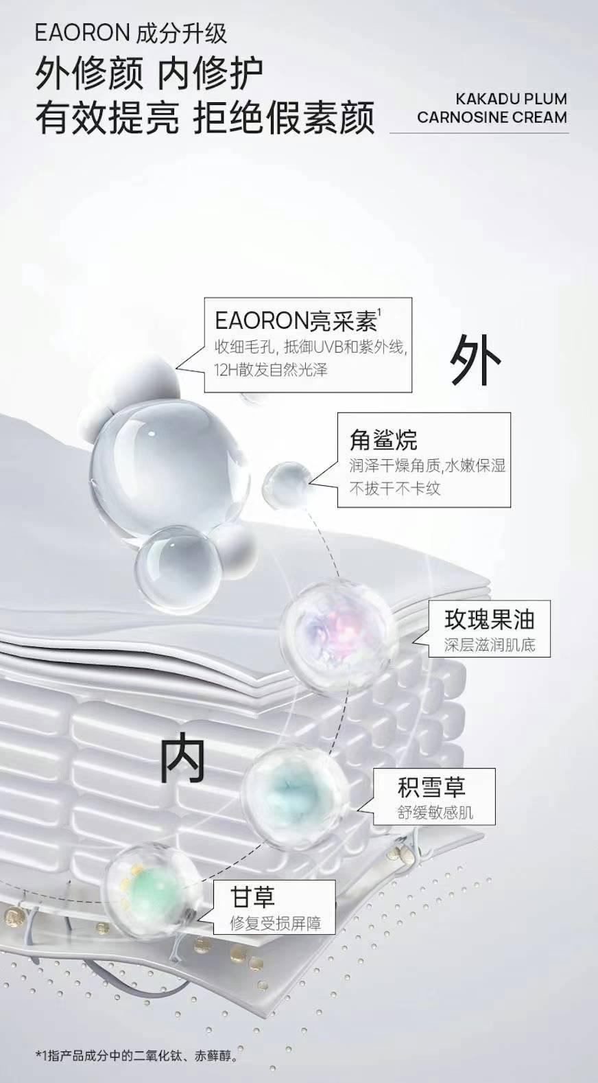 全新EAORON卡卡杜第三代素顏霜,偽素顏神器,革新成膜科技,冰淇淋質地水感輕盈易推開;清透素顏,一秒提亮膚色,無緊繃附著感不卡紋,24h呵護養膚。升級添加抗糖肌肽,阻斷肌膚糖化暗沈,一瓶搞定面霜+底妝,全日亮白不暗沈,不假白,提亮遮暇都剛好👍