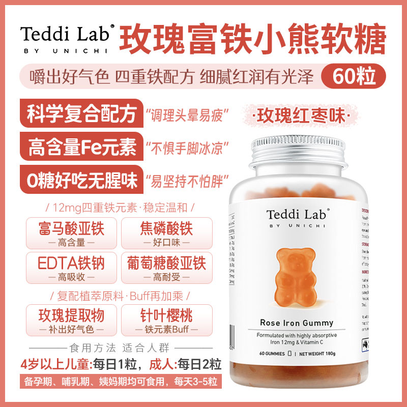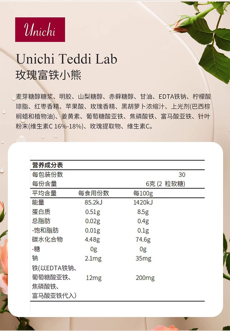 Unichi 新品✨玫瑰富鐵小熊軟糖60粒🌹