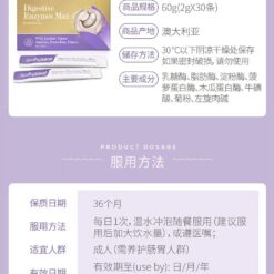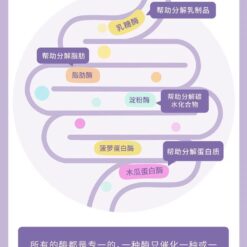 採用5種必需酶特別配製,添加左旋肉鹼酒石酸鹽和牛磺酸;共同幫助蛋白質、脂肪、碳水化合物、糖、水果纖維、植物纖維和乳製品的分解和吸收。