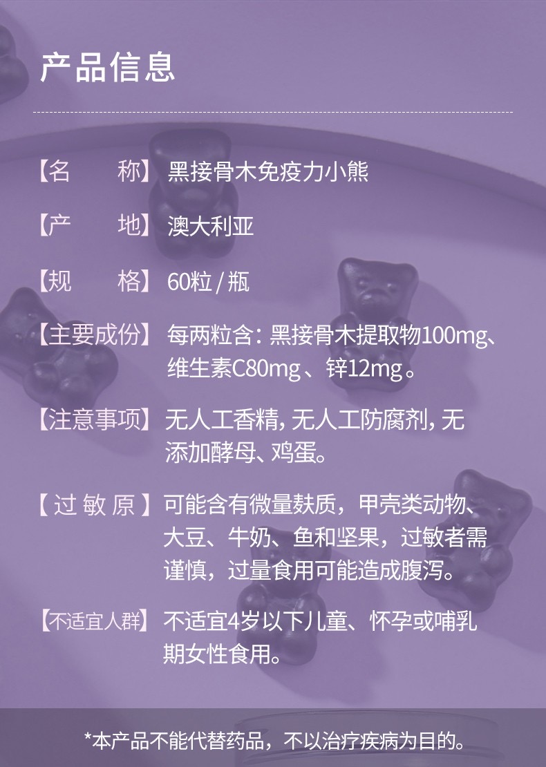 Unichi黑接骨木免疫力小熊軟糖60粒🐻