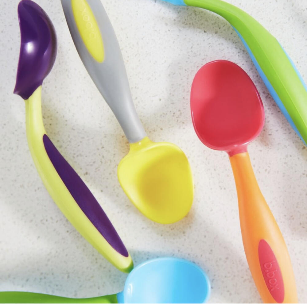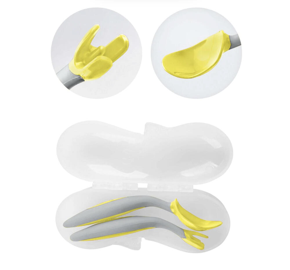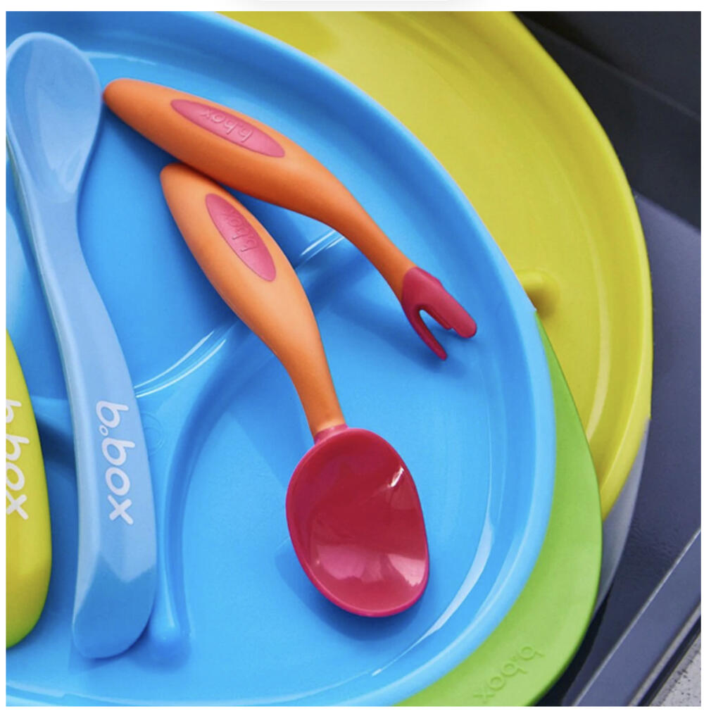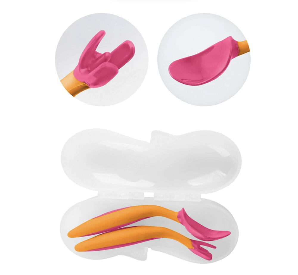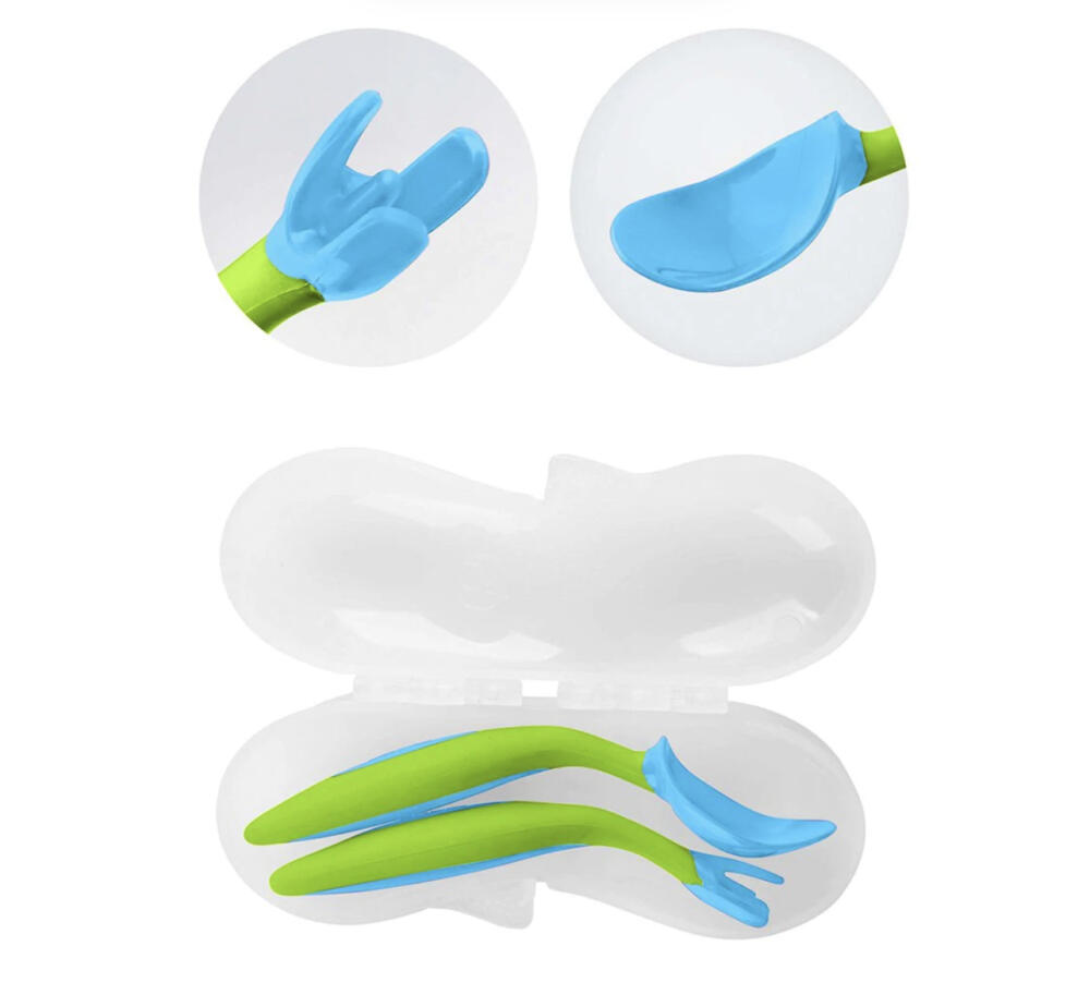 澳洲b.box寶寶學吃飯叉勺套裝。彎頭輔食,細節設計很棒——實用彎曲手柄設計,貼合的手柄可以讓寶寶左手和右手舒服地掌握使用;叉勺圓潤設計,避免勺子太大、太尖,寶寶不怕被弄傷;創新便攜三角叉,更容易叉住實物;加深勺體,吃飯喝湯都可以;9個月以上寶寶就能用咯!快來讓寶寶get新技能,四種顏色哦!