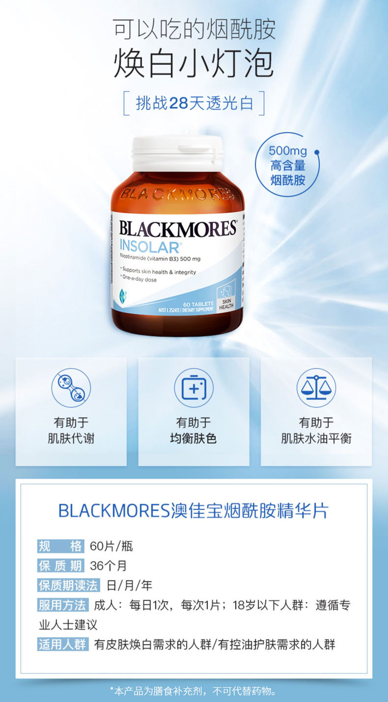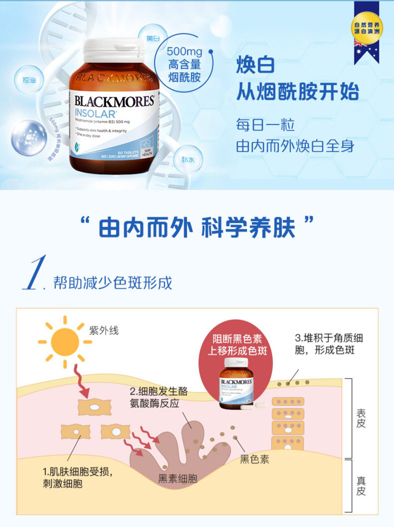 Blackmores Insolar Skin Health 煙酰胺煥白修復精華片60片(維生素B3)