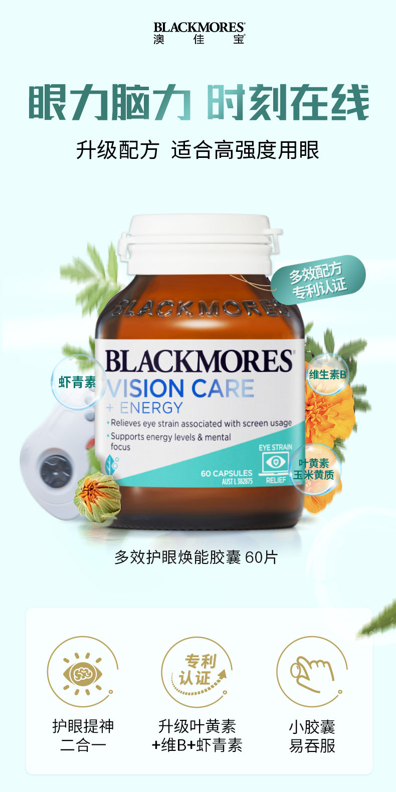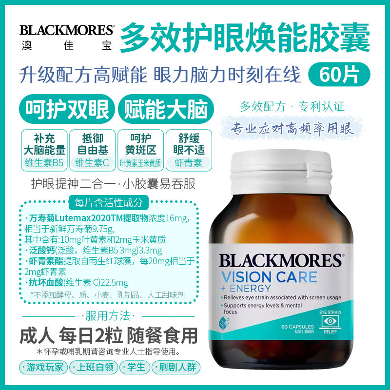 獨特的配方,可緩解與屏幕使用相關的眼睛疲勞,並幫助維持視力健康水平。