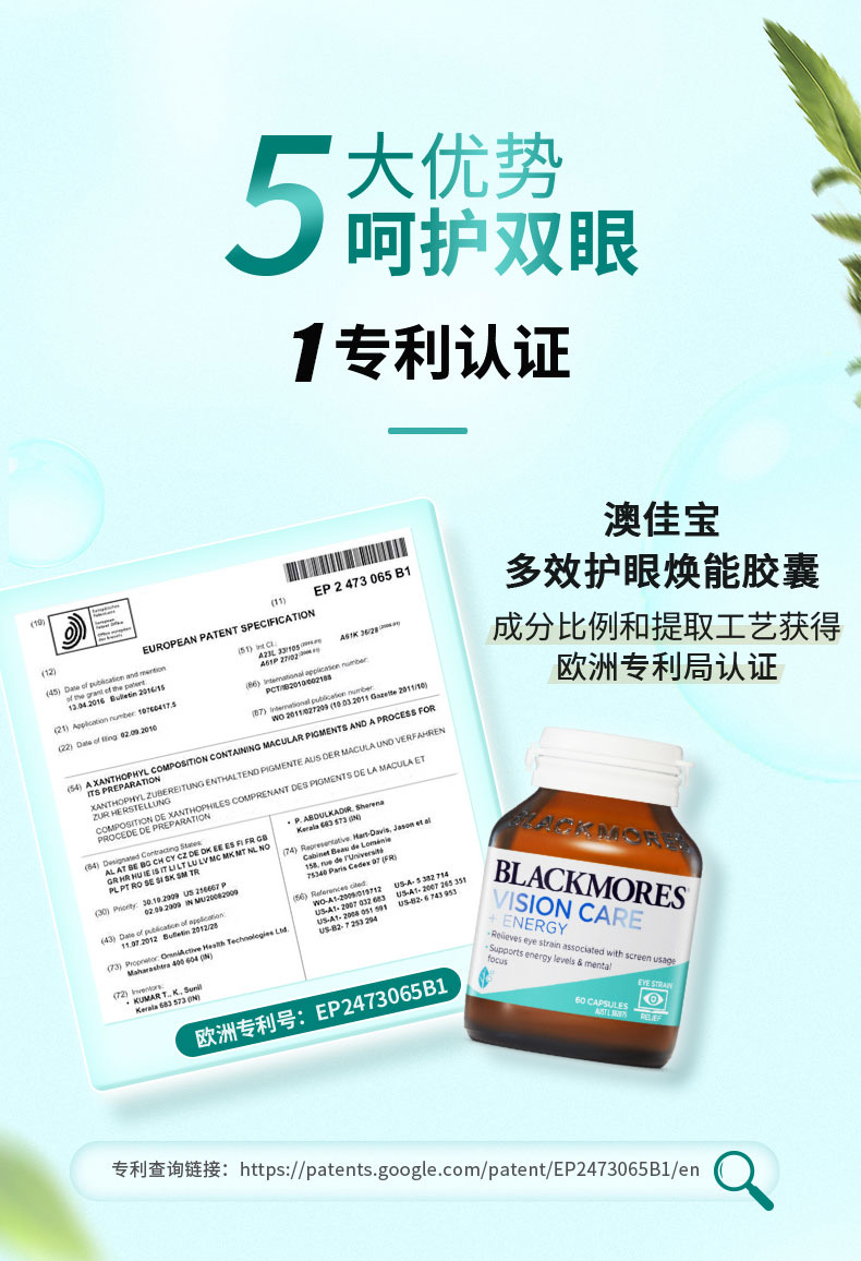 🍃主要成分:萬壽菊Lutemax 2020™ 提取物乾濃縮物16毫克,葉黃素 10 毫克和玉米黃質 2 毫克,泛酸鈣(泛酸,維生素 B5 3 毫克)3.3 毫克,從雨生紅球藻中提取的蝦青素酯 20 毫克。蝦青素 2 毫克,維生素 C22.5 毫克。
