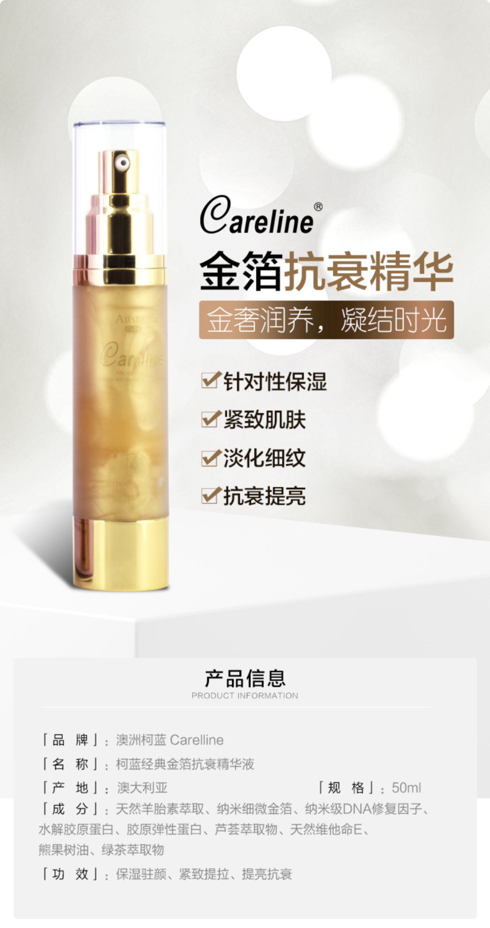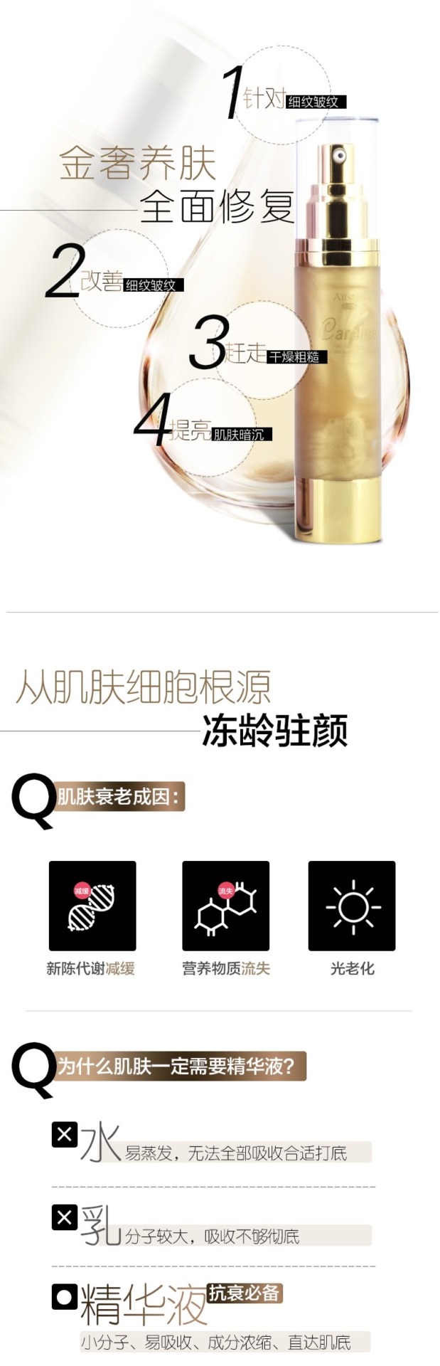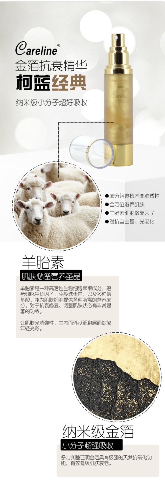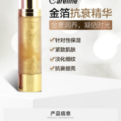 添加金箔配方,可恢復肌膚水分,增加肌膚彈力,並且快速吸收、修復和滋潤肌膚。 金箔有助於刺激肌膚細胞,增加肌膚光澤,並減少細紋、皺紋和老年斑的出現。同時減少肌膚衰老。