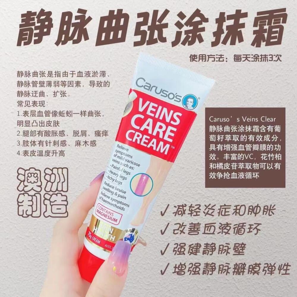 Caruso’s Natural Health 靜脈曲張舒緩霜有效促進腿部血液循環,舒緩腿部僵硬,浮腫,靜脈曲張的狀況,使雙腿更加健康有彈性;含有七葉樹的提取物,能夠刺激腿部淋巴循環,排除毒素及多餘水份,腿部強效塑形,讓雙腿更輕盈,高效抗氧化物促進細胞新陳代謝,預防橘皮紋,使雙腿肌膚光潔細滑緊致,維持人體健康。