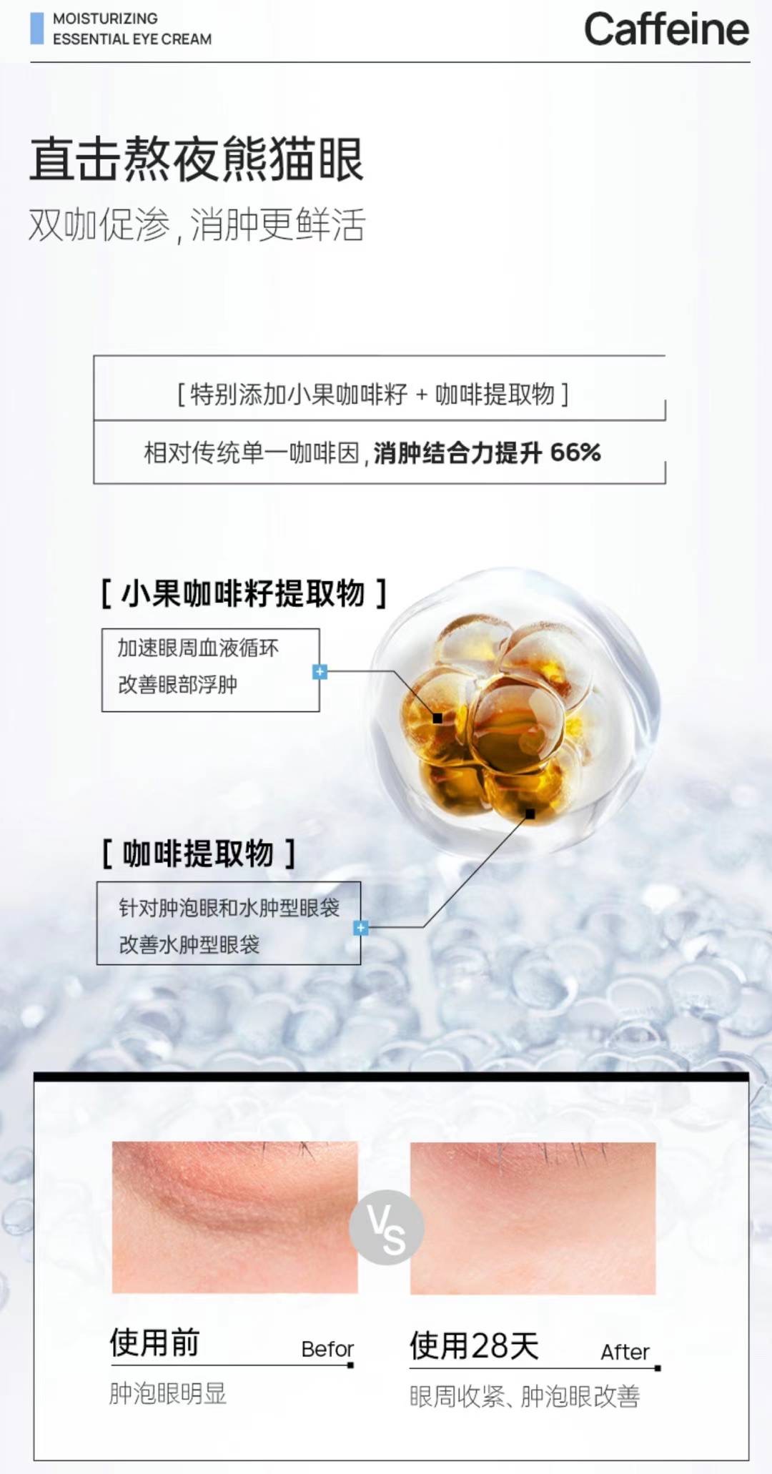精准導滲,貼合眼肌,配合專屬按摩頭特別添加雙咖促滲,直擊熬夜熊貓眼🐼
