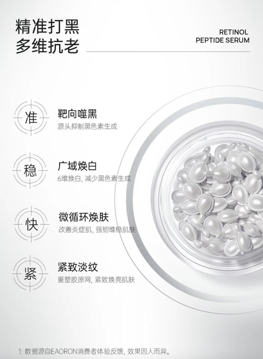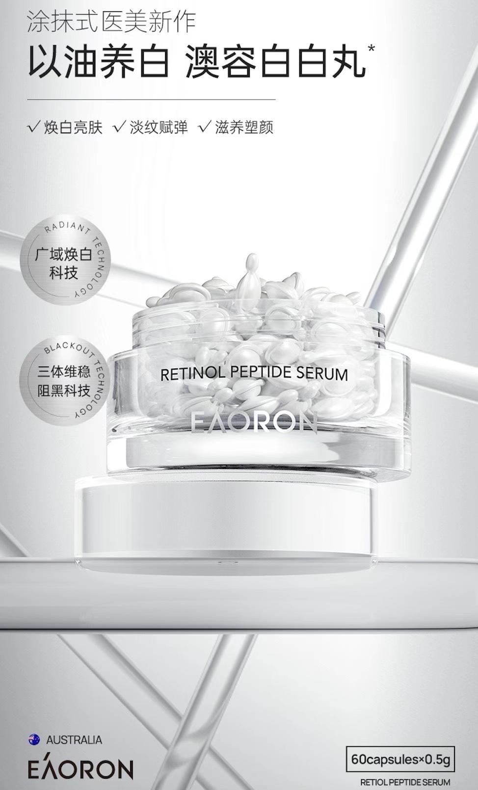 黃氣顯老,老化變暗,抗老亮白都想要?全新EAORON白白丸,精准打黑多維抗老!澳洲鹽生杜氏藻+VC王者卡卡杜李,根源斷黑;協同A醇,精准淡紋,均勻膚色,再生緊致彈滑肌