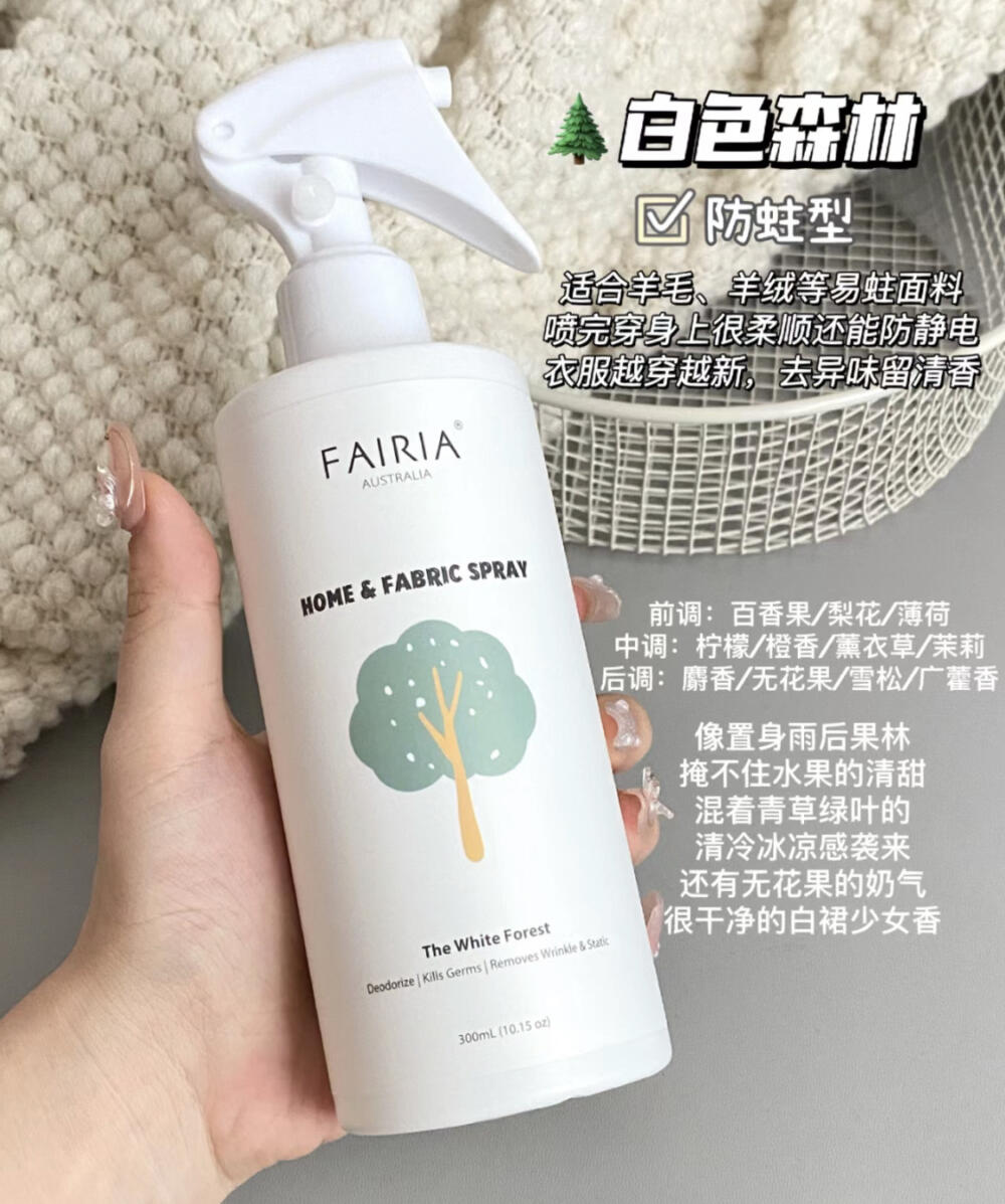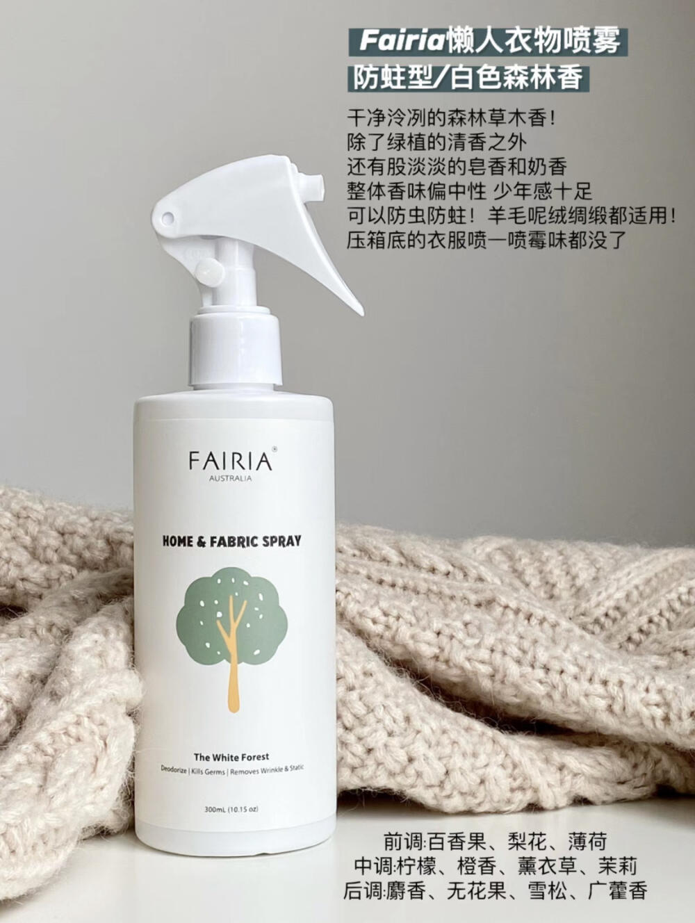 Fairia衣物除臭衣物噴霧是您衣櫥的必備品!照顧您的織物時增添了柔和的香味。它可以去除異味、細菌、塵蟎、皺紋和靜電。非常適合被認為是乾洗、商務旅客和最後一分鐘修飾的織物。