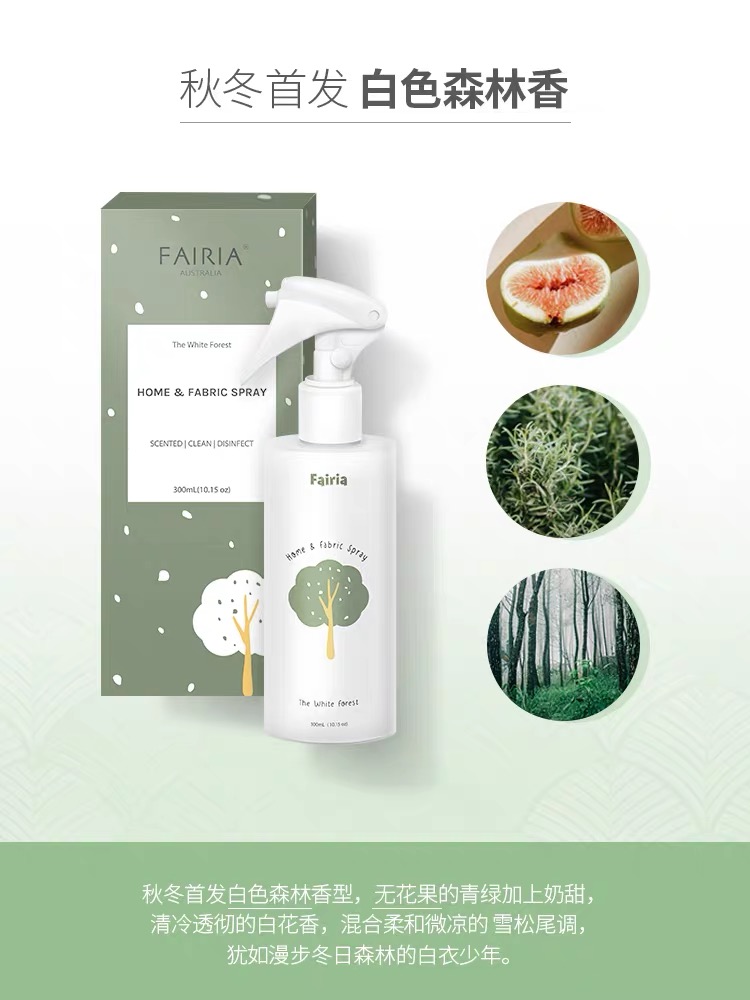香調整體是草木的清香。植物綠意盎然,雨過天晴後,水滴從樹葉上滑過,空氣變得潔淨,雨後森林就是如此清新。除了草木植物的香氣,還可以感受到乾淨的皂感和微微的奶香。白色森林是防蛀款,羊毛尼絨都可以用,衣物預防蟲咬同時,還可以讓衣物還原蓬松柔軟的觸感。