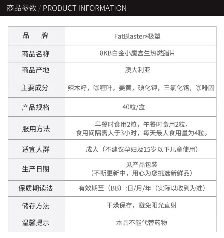 澳洲Fatblaster 8kb白金版溶脂小魔盒全新升級40粒