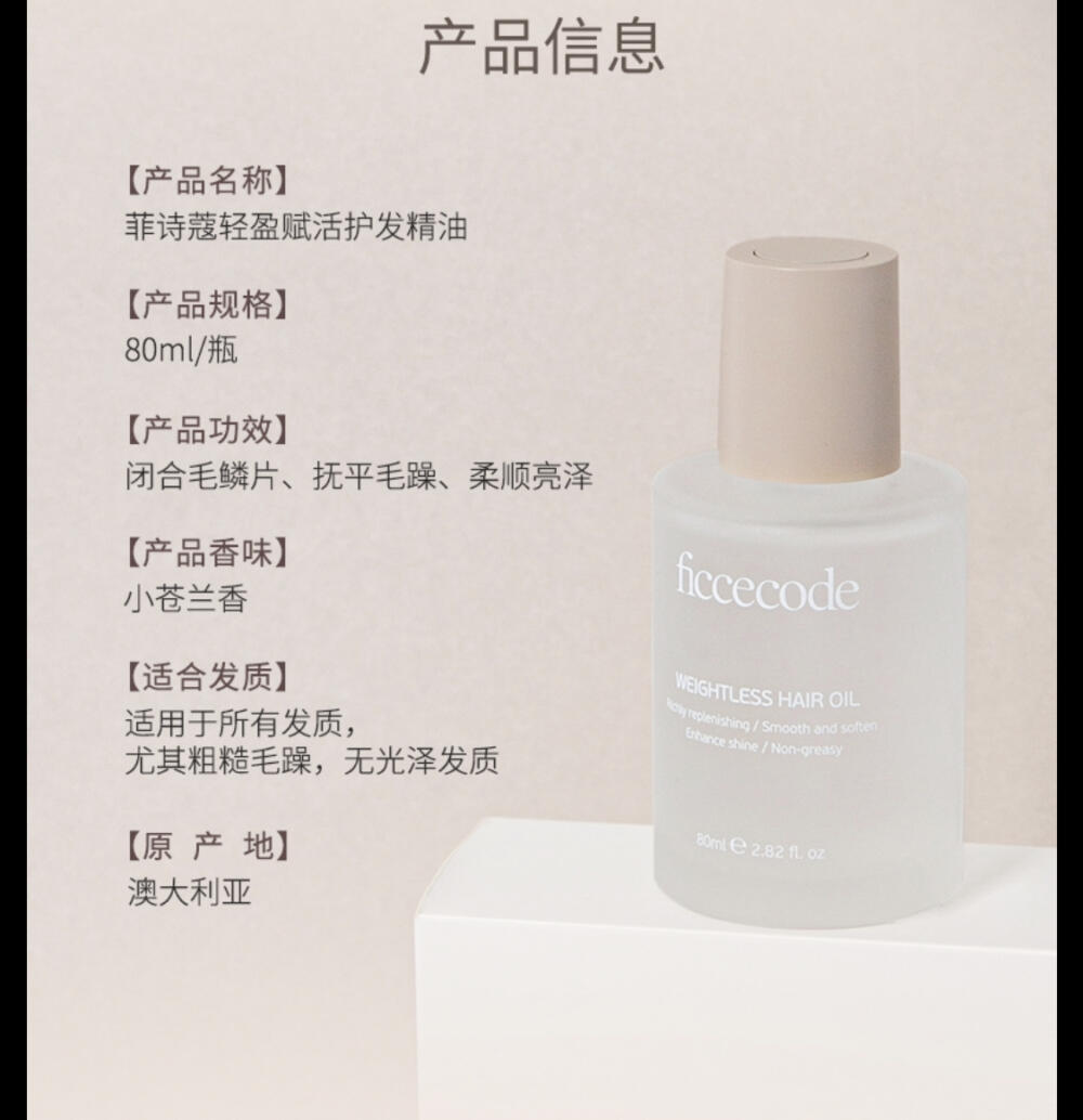 Ficcecode 菲斯寇植物精油護髮油 (若光瓶)澳洲版80ml