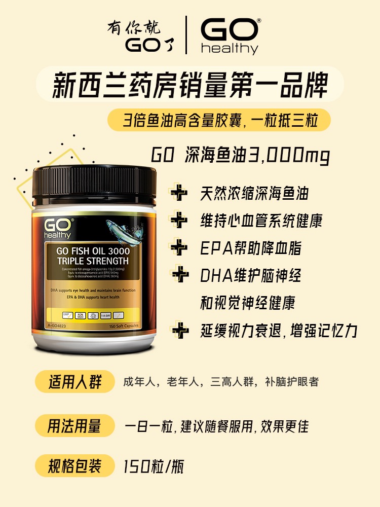 Go healthy 「3000mg 」高含量三倍魚油 150粒(新版)