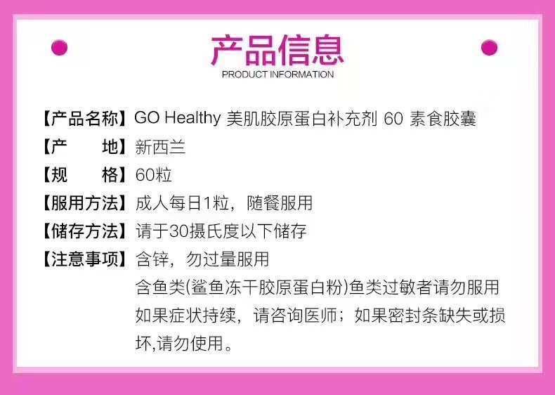 紐西蘭”Go Healthy”海洋膠原蛋白Marine Collagen 純天然的健康食品,能令肌膚重現生機,充滿彈性,青春永駐。
