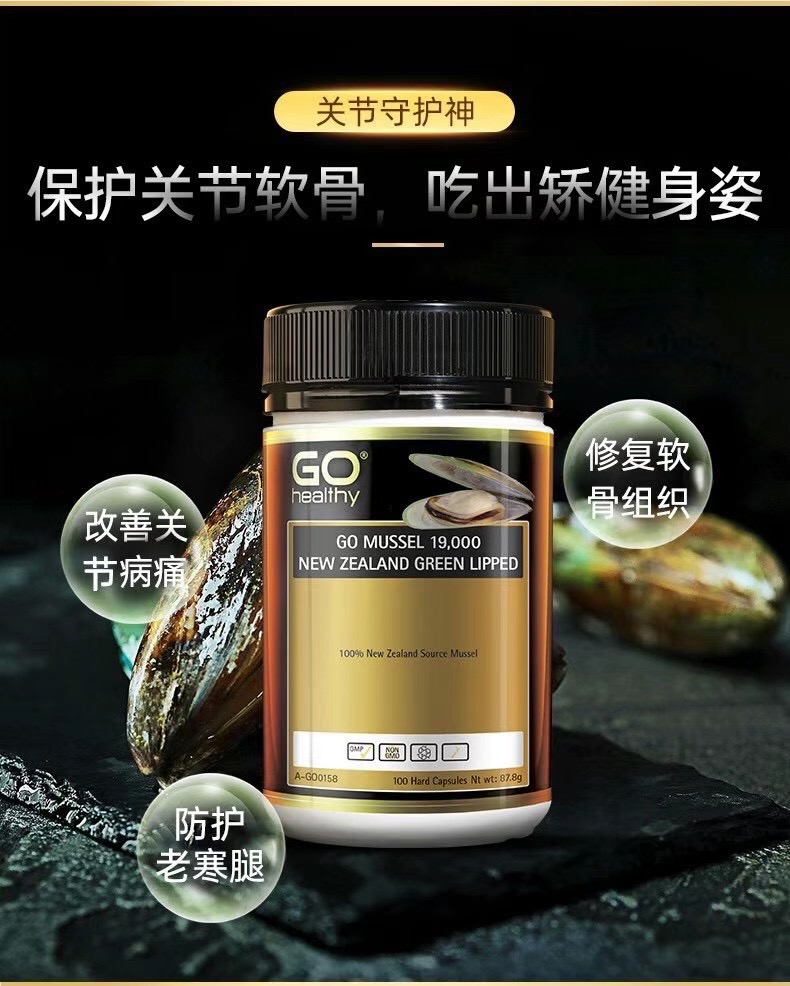 🇦🇺 Go Healthy紐西蘭綠唇貽貝19000mg膠囊 高含量成分更加有助於身體健康✨ 富含軟骨素+礦物質+糖胺聚糖✨ 有效的幫助中老年人🧓 ✅ 預防三高✅ 保護關節✅ 抵抗炎症👏 讓晚年生活更健康快樂