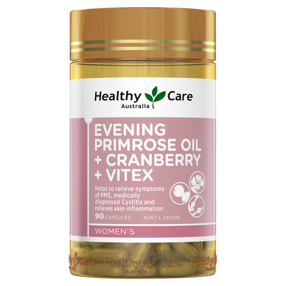 月見草油(EPO),蔓越莓和Vitex(Chasteberry)提取物的獨特組合,Healthcare Care的月見草油+蔓越莓+ Vitex特別配方可幫助緩解PMS症狀,醫學診斷的膀胱炎和減輕炎症性皮膚病。
