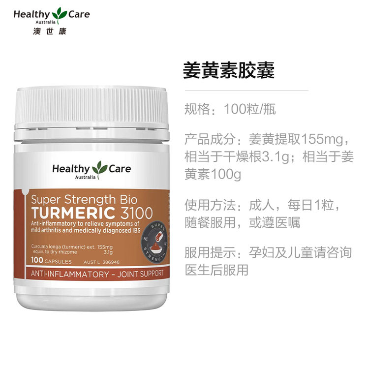 每粒含量:姜黃根提取物:3100mg