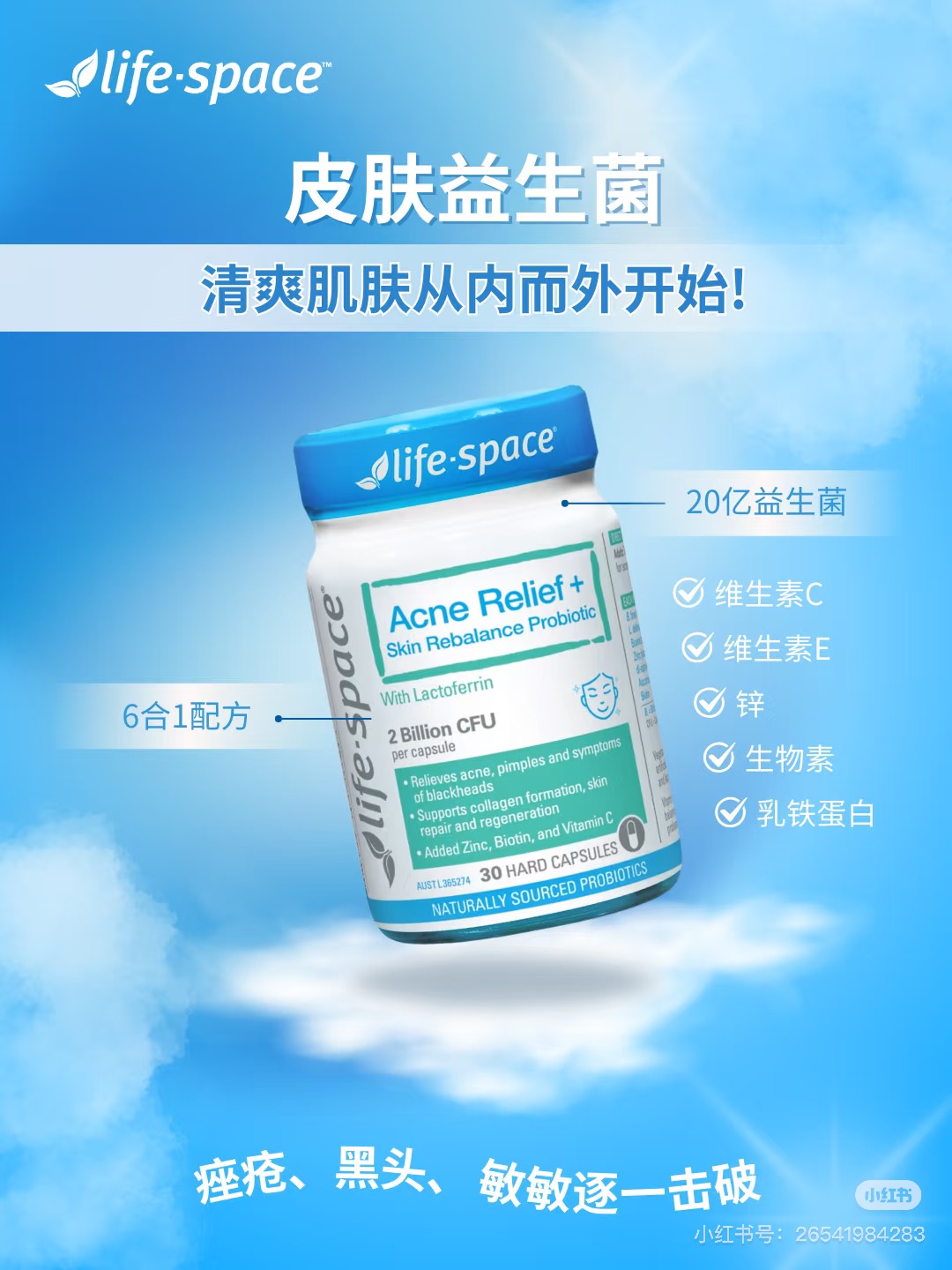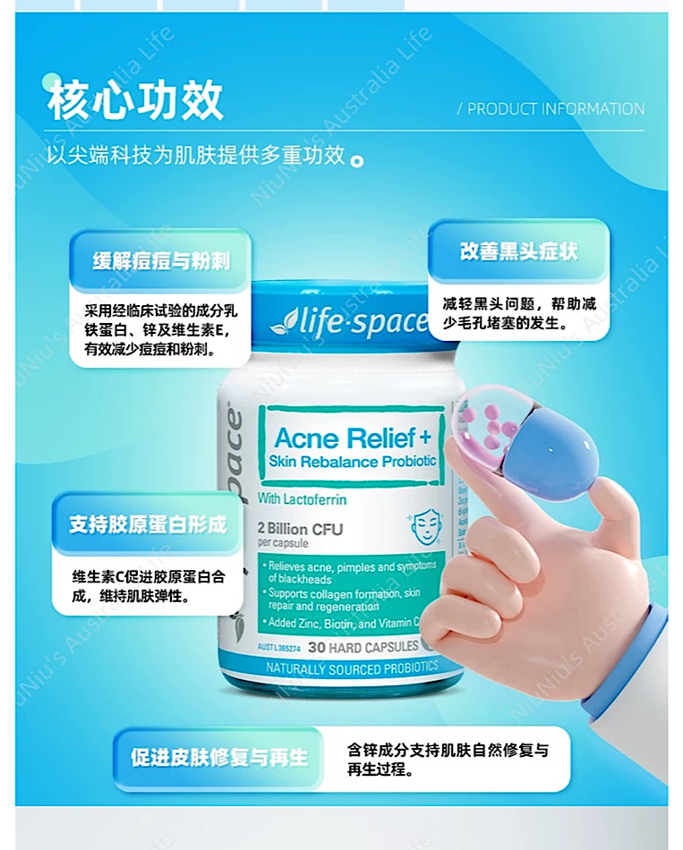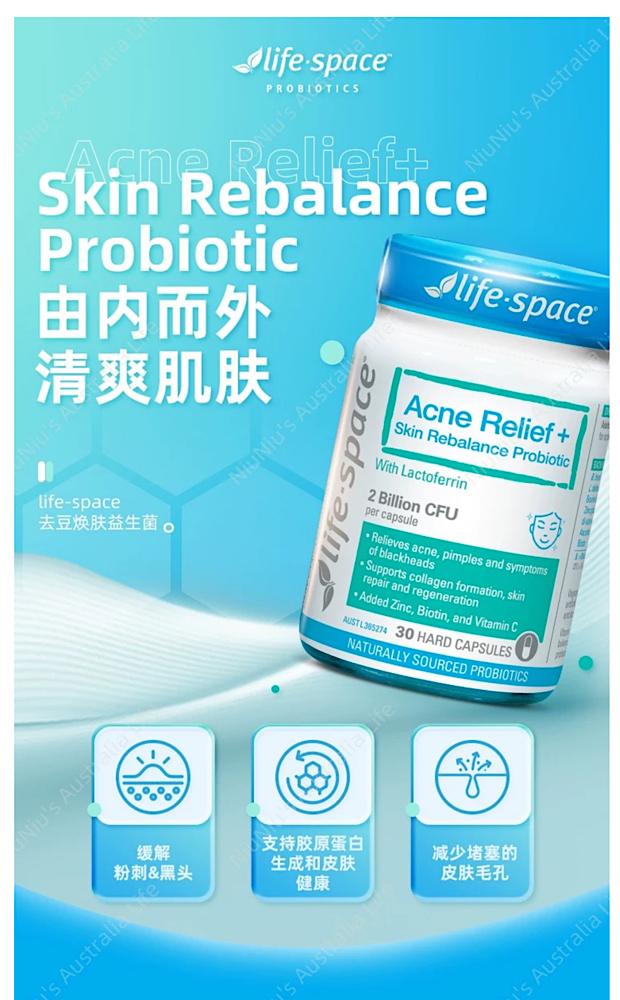 (新品)Life-Space Acne Relief + Skin Rebalance 淨顏除痘益生菌30粒