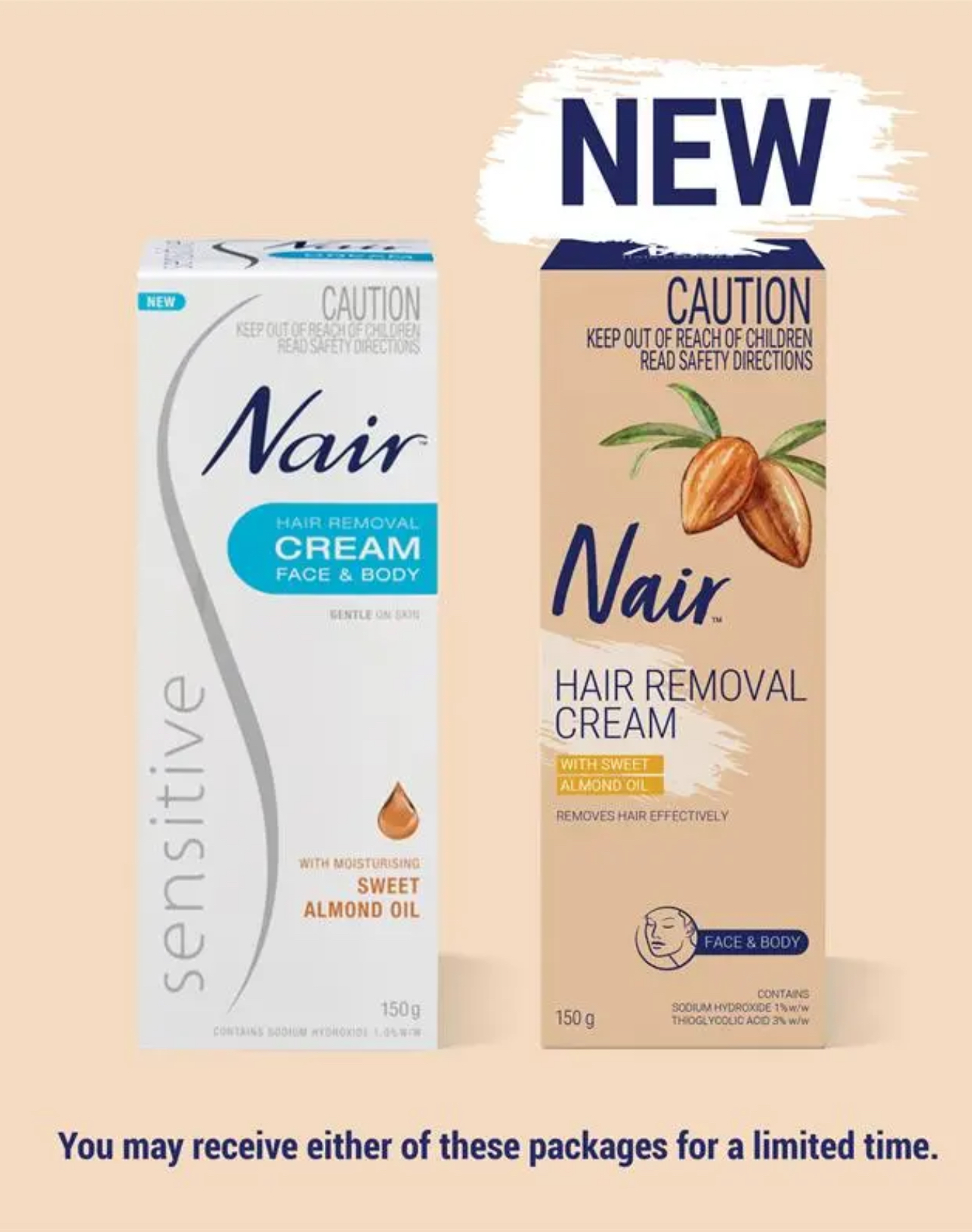 Nair Hair Removal Cream 臉部+身體脫毛膏 新版含甜杏仁(附刮板)75g/150g
