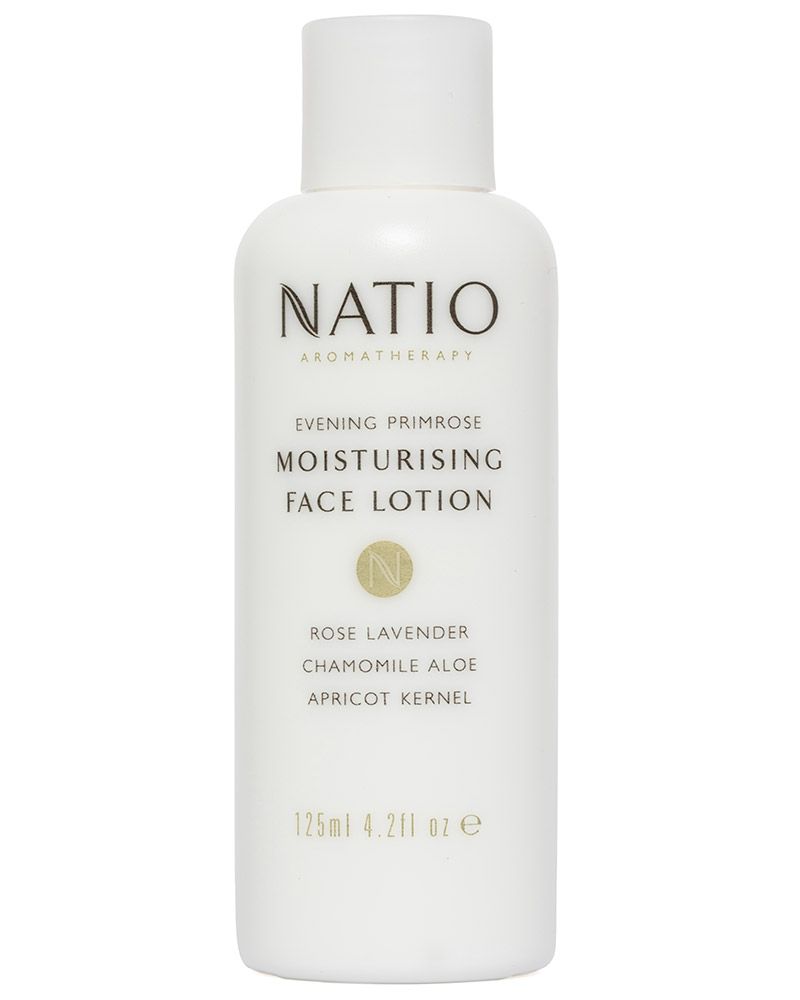 Natio娜迪奧月見草保濕乳液特含天然月見草萃取精華及多種天然植物成分,可以滋潤補水,抑制平衡油份分泌,防止缺水及減少細紋,可作妝前底霜使用,適合中、混合及油性皮膚。天然月見草精華,可以深入保濕,深層鎖水,同時又可預防肌膚老化,防止細紋的產生;玫瑰則具有保濕美白之功效;薰衣草可以鎮靜舒緩肌膚,緩解肌膚乾燥所帶來的不適感;洋甘菊成分具有修復保濕的功效,在維持肌膚水潤的同時,可以消除肌膚的干癢過敏現象。本品滋潤不油膩,香味宜人,質地輕盈,易於吸收,不會給肌膚造成任何負擔,各種膚質均可使用。