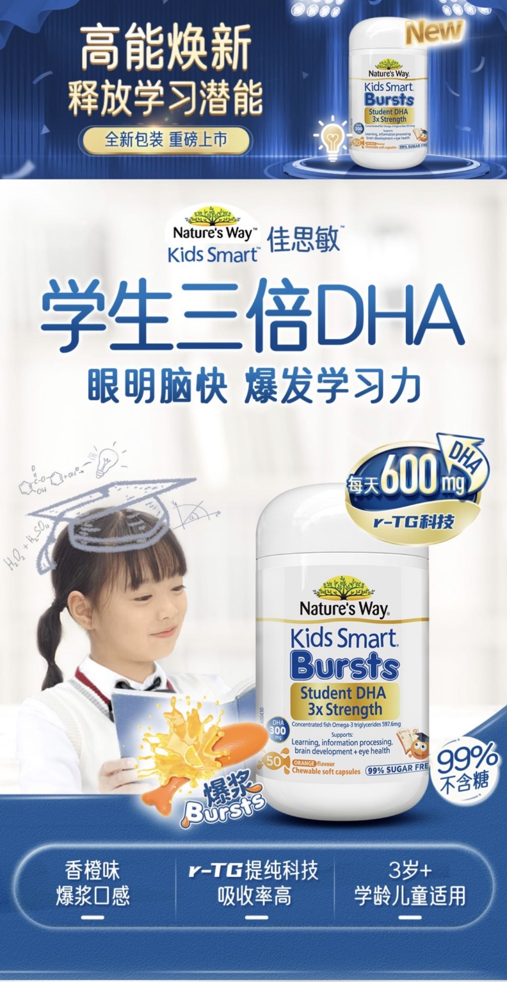 Nature’s Way佳思敏三倍強度嬰幼兒童DHA 300mg 50粒軟膠囊(新包裝)