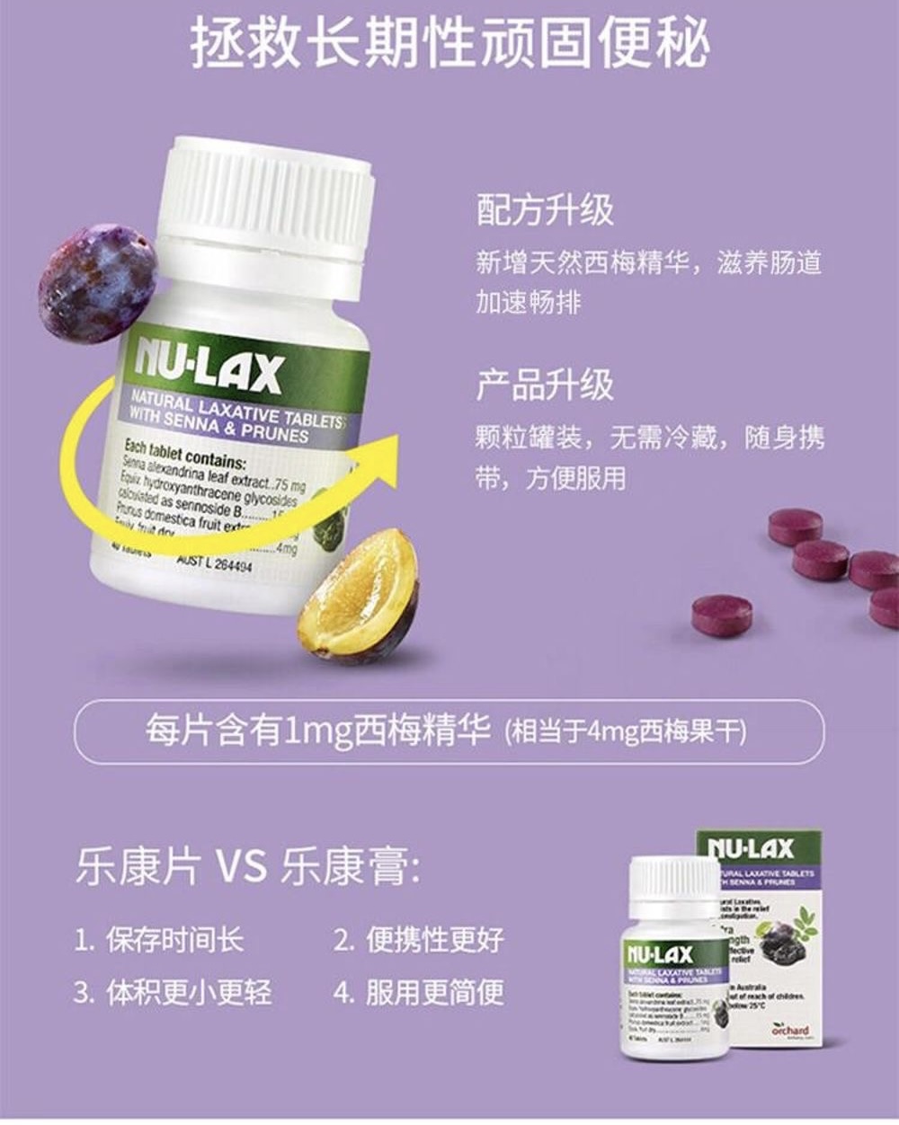 Nu-lax Natural Laxative Prune西梅樂康片40片(加強)