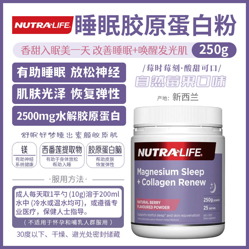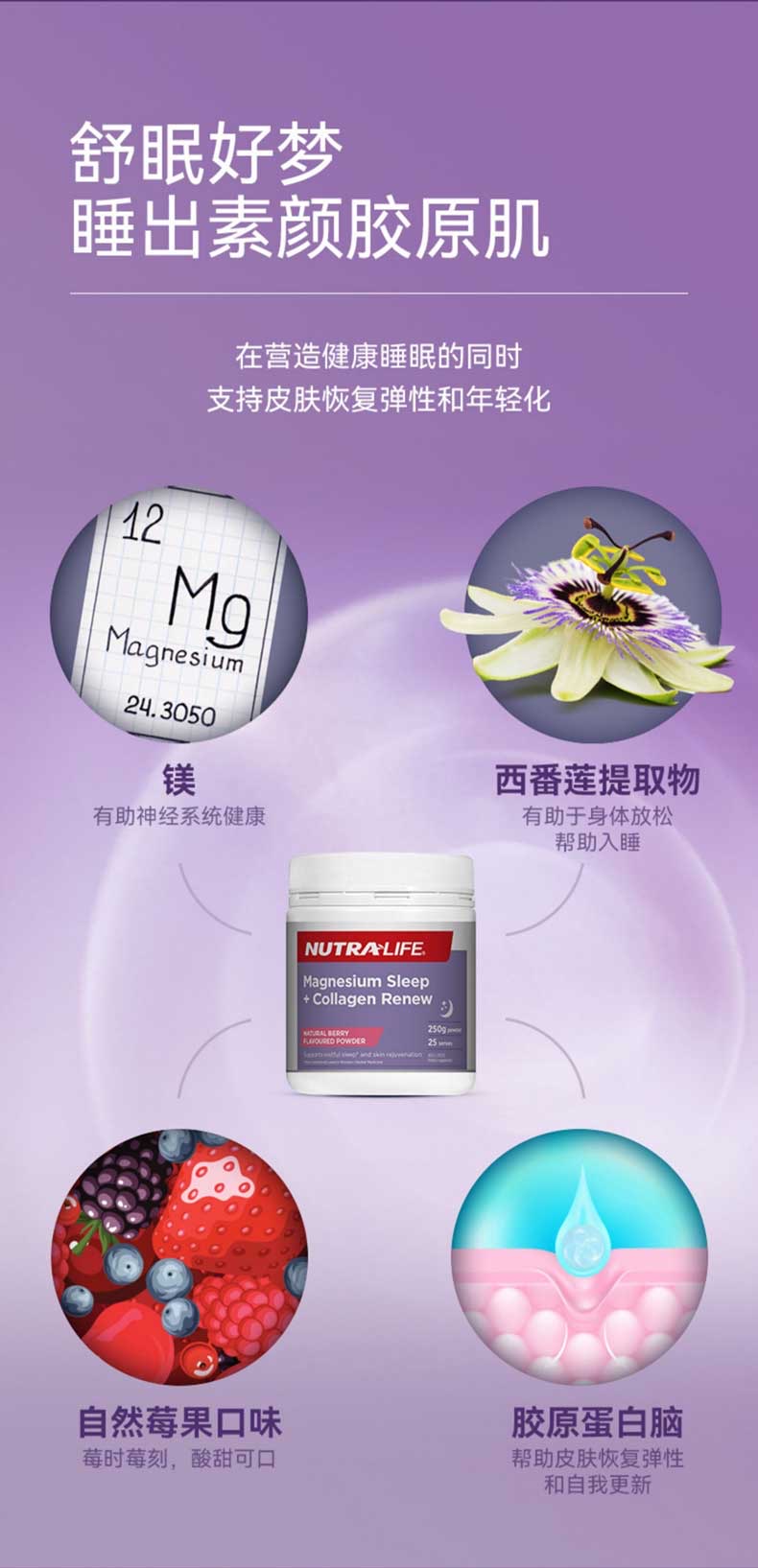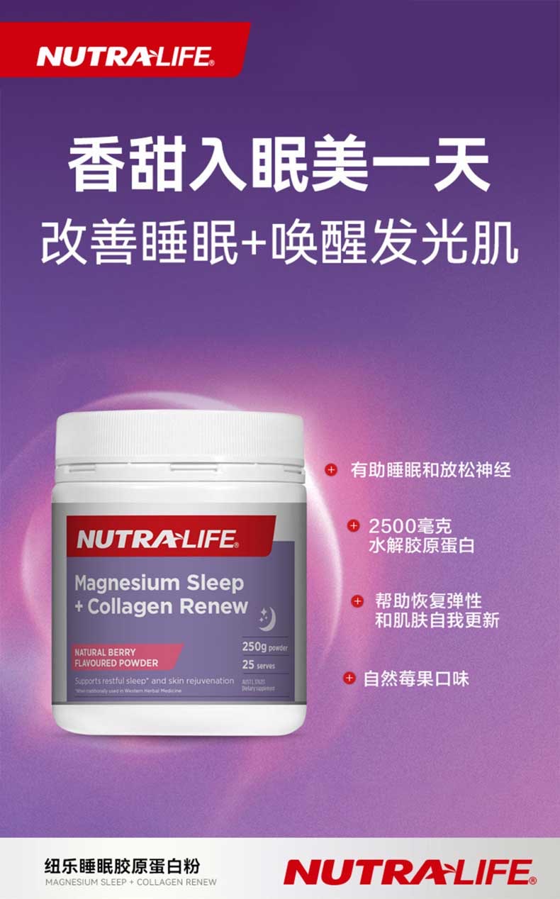 🆕紐樂睡眠鎂膠原蛋白粉,支持睡眠和皮膚再生,含有獨特的高強度鎂讓你輕鬆入眠,添加西番蓮、膠原蛋白肽、維生素C和鋅多種營養成分,純天然的漿果味,不含人工色素、甜味劑或防腐劑,好氣色,睡出來。