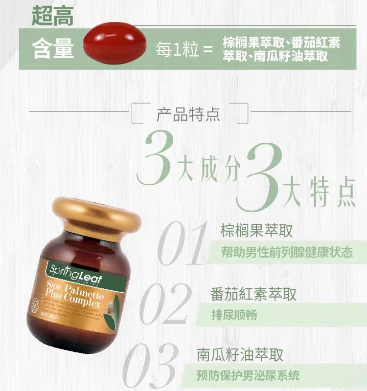 每粒膠囊含有大黃蓮果提取物160毫克,葫蘆籽油固定80毫克,番茄果提取物5毫克。