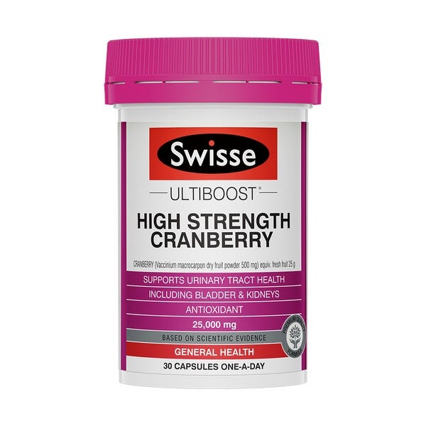 Swisse Ultiboost 濃縮蔓越莓符合高品質標準,以便利的一天一劑/粒的劑量提供蔓越莓濃縮液。含經臨床試驗的高功效蔓越莓,即一種獨特的粉末狀成個蔓越莓果,有助於維持尿道健康。