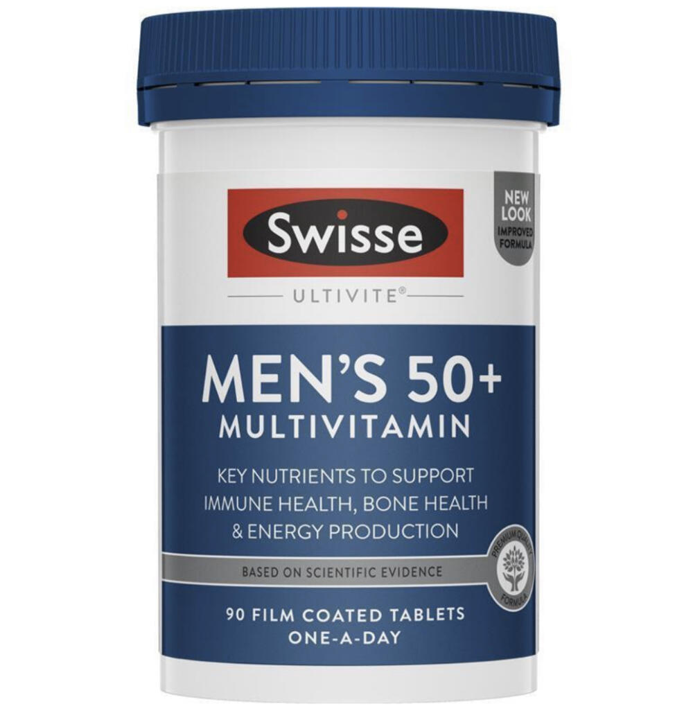Swisse Ultivite 50歲以上男性多元維他命是一種全面的多元維他命,含 41種維他命、礦物質、抗氧化成份、天然草本精華及其他營養物質,可幫助維持 50 歲以上男性的能量及耐力,維持精神及免疫系統健康。