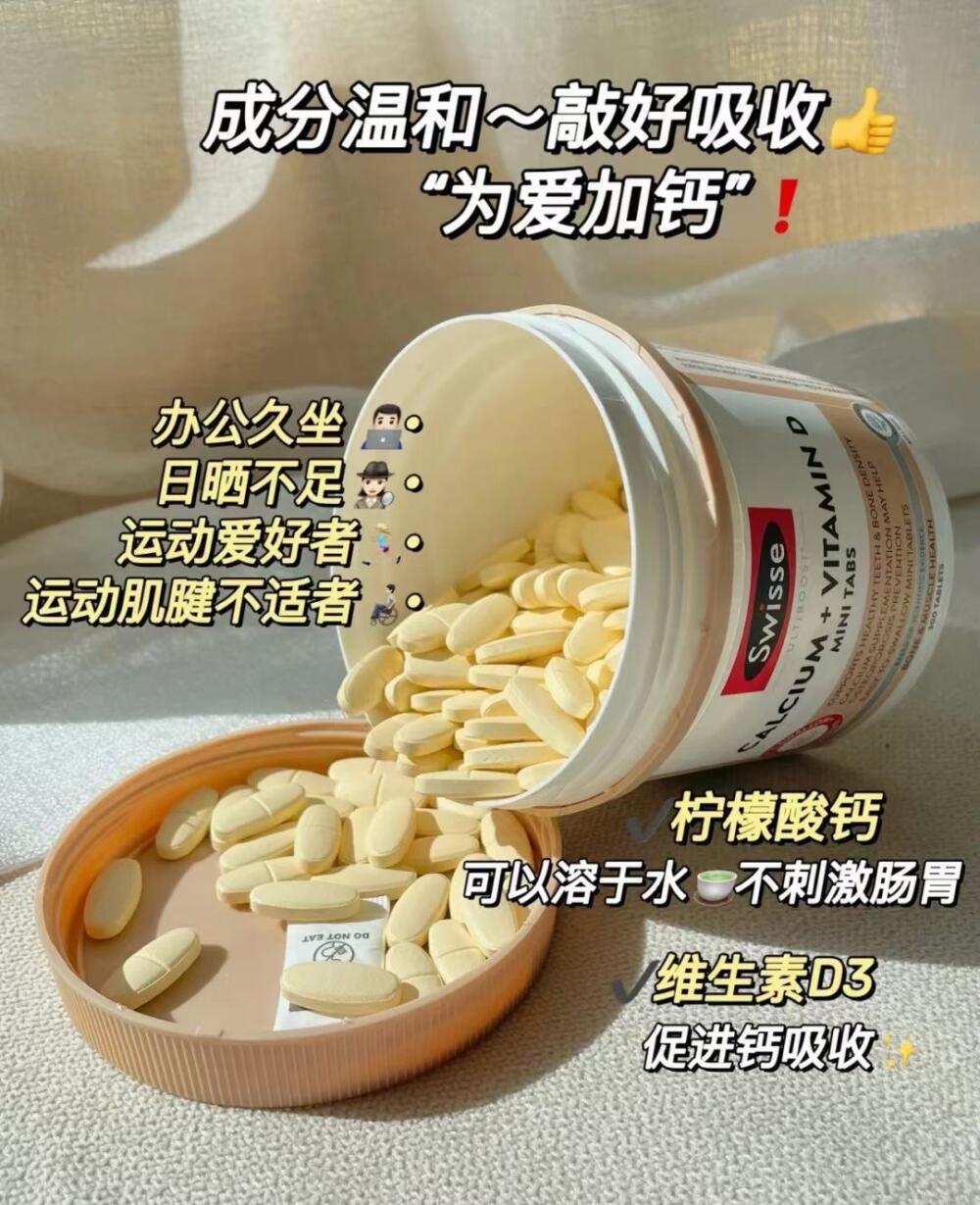 澳洲保健品Swisse迷你鈣片。含高品質鈣和維生素D3,適合全家一起日常補鈣用✨