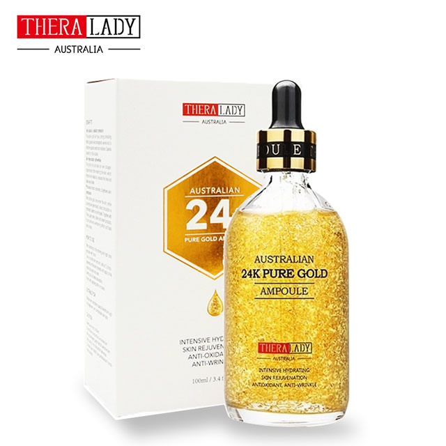 澳洲大金瓶,24K黃金精華,每日早晚潔面後使用,適合所有膚質,輕輕拍打,8秒滲透,看得到的水溶性澳洲黃金成份,和滿滿的玻尿酸,使用過後,精華液和養份深入肌膚,水亮氣色。 Thera Lady 澳洲貴婦大金瓶,6000年黃金護膚術與澳洲高純度黃金的完美邂逅。