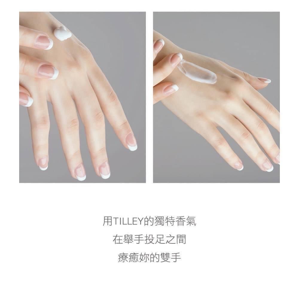 使用最優質的杏仁油、乳木果油和天然維生素 E,添加牡丹和玫瑰花香 氛精油所製成的護手霜,快速修復受損的指甲和手上肌 膚,得到最柔順的滋潤。
