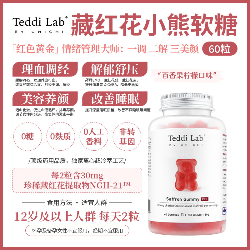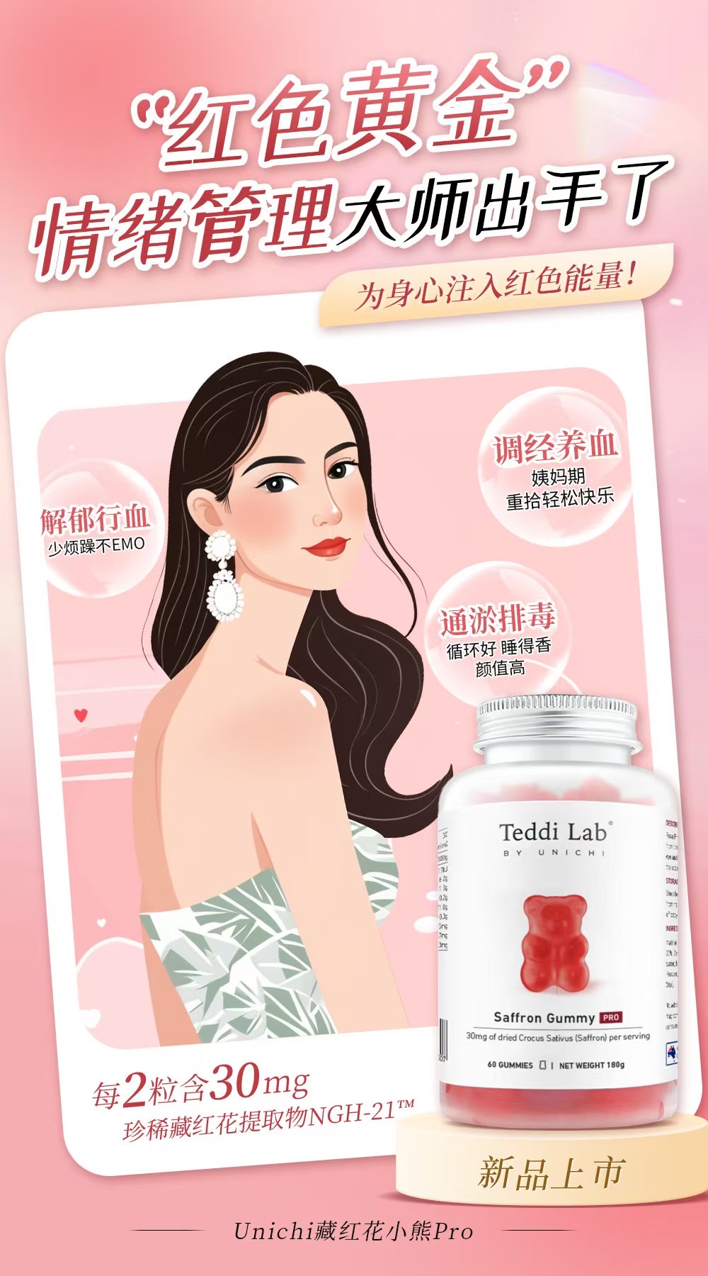 Unichi藏紅花小熊Pro🧸 告別經前綜合症(PMS) 👋經期前的情緒波動、失眠、暴食和突然的情緒低落,是激素在作怪!
