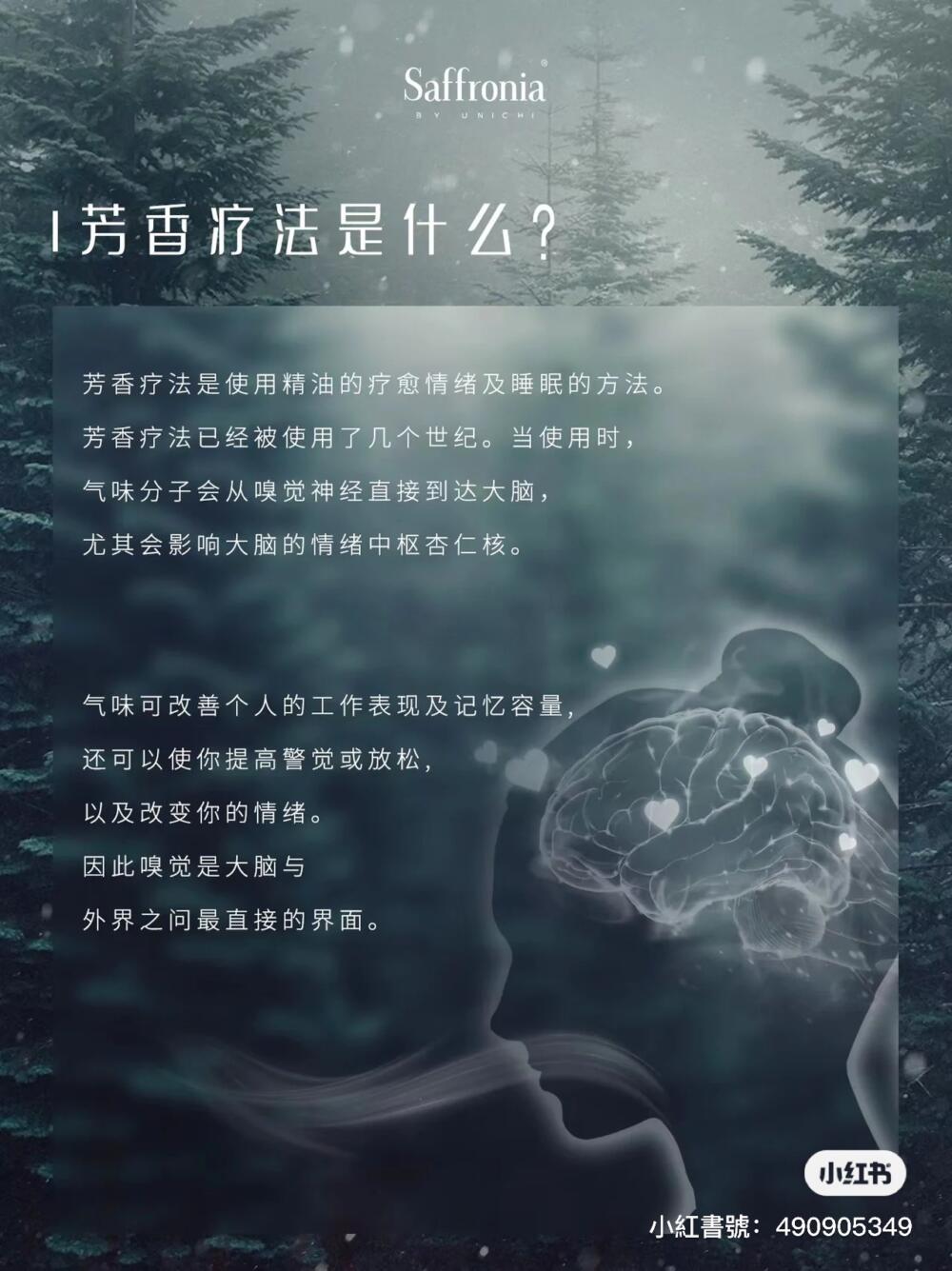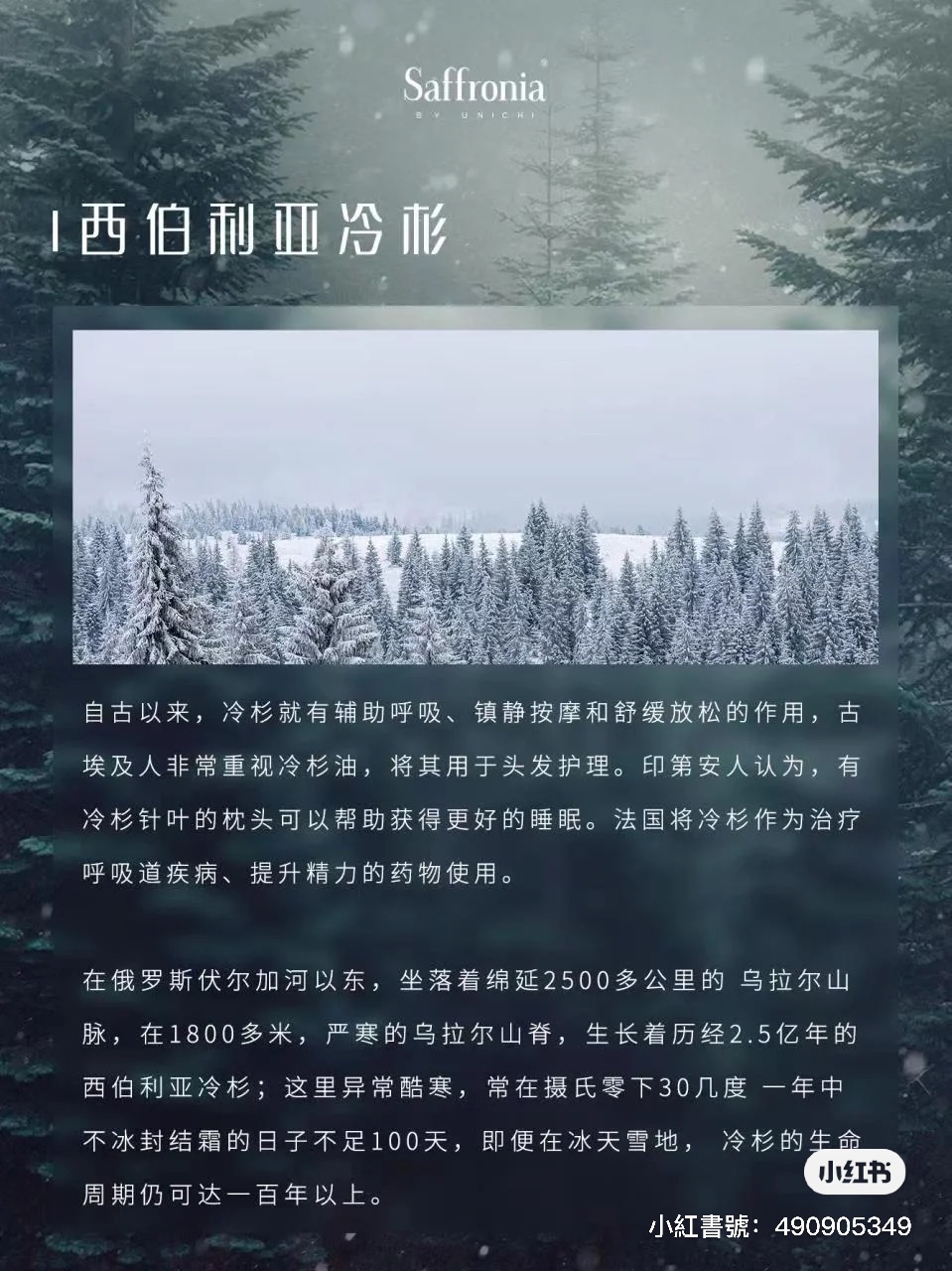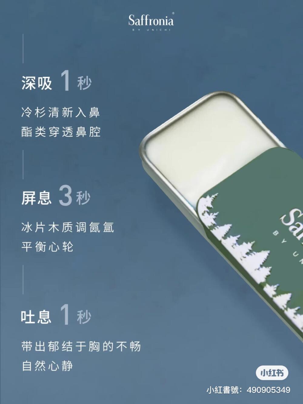 Unichi Saffronia 冷靜香,萃取西伯利亞冷杉精油,西伯利亞冷杉樹被稱為植物界「活化石」,始於 2.5 億年前,歷經 2 個冰川紀。